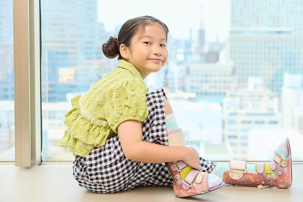 紬さんが小学1年生になった春、友だちのお父さんからテレビ局のイベントでキッズモデルをやってみないかと誘われました。脚に装具を付けて歩くことができる紬さん。車いすでも歩いても、どちらで参加してもいいと言われ、「歩いて出たい」と答えたそうです。