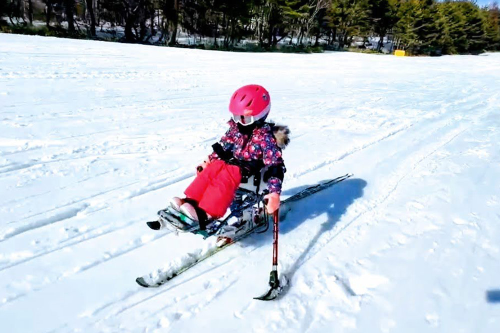 紬さんはスキーも大好きです。パラアスリートでアルペンスキー日本代表の経験者でもある野島弘さんとの縁があって、2022年からチェアスキーを始めました。「こどもが、障害を理由にいろんな楽しいことができなくなるのはすごく残念」という野島さんの熱意が、最初は心配して、参加を断っていた香織さんたちの心を動かしたそうです。